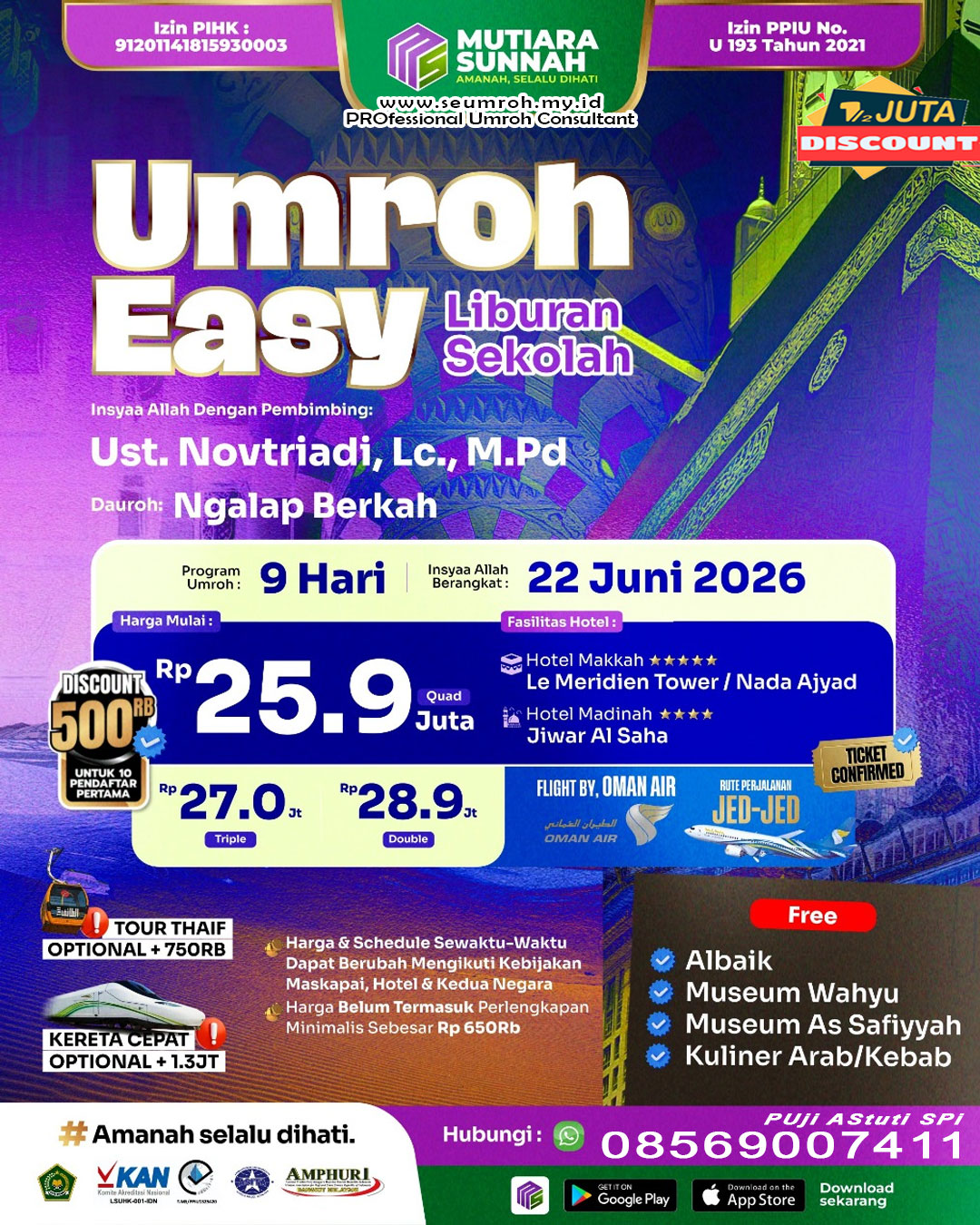 Tentukan segera budget dan pilih waktu keberangkatan umroh anda bersama kami.